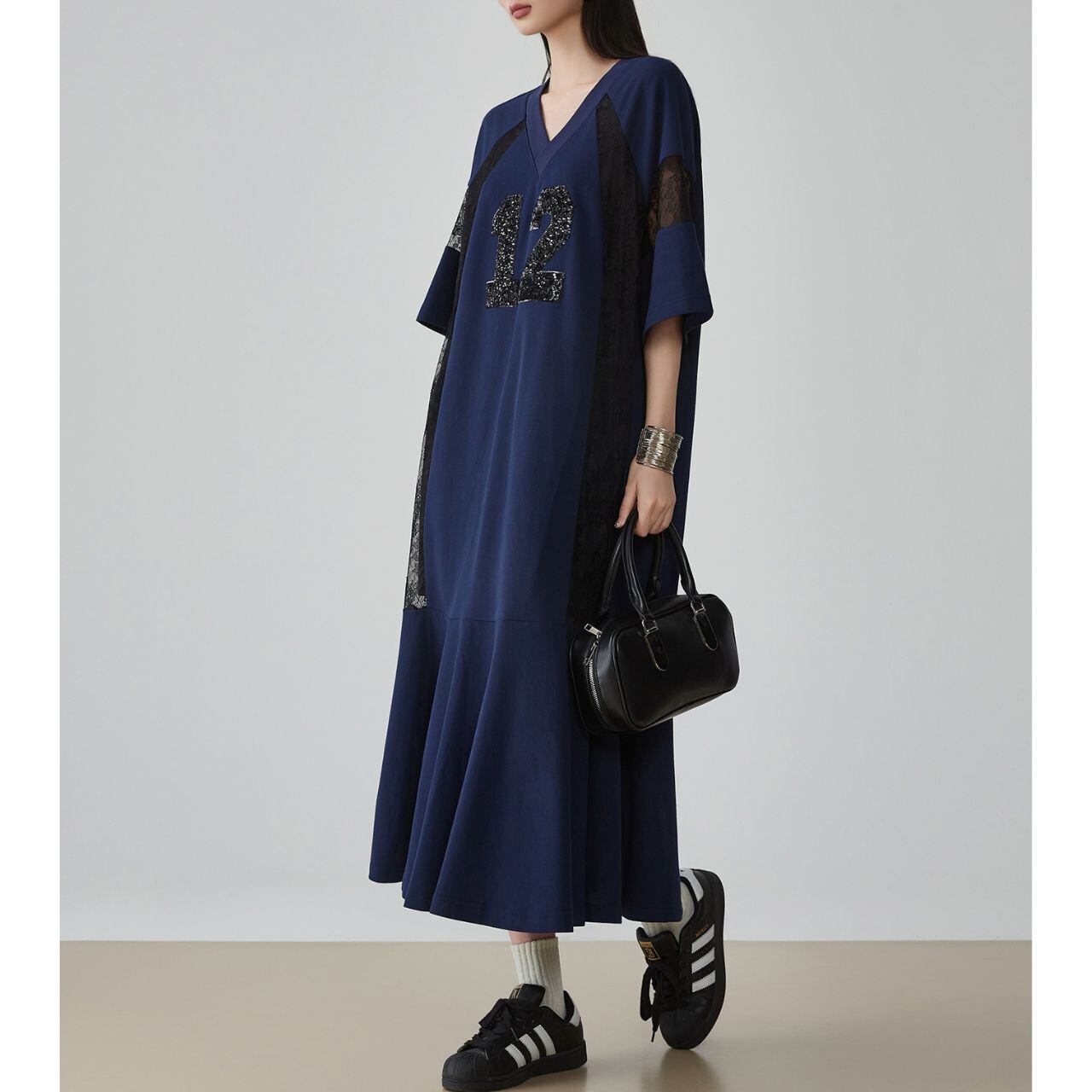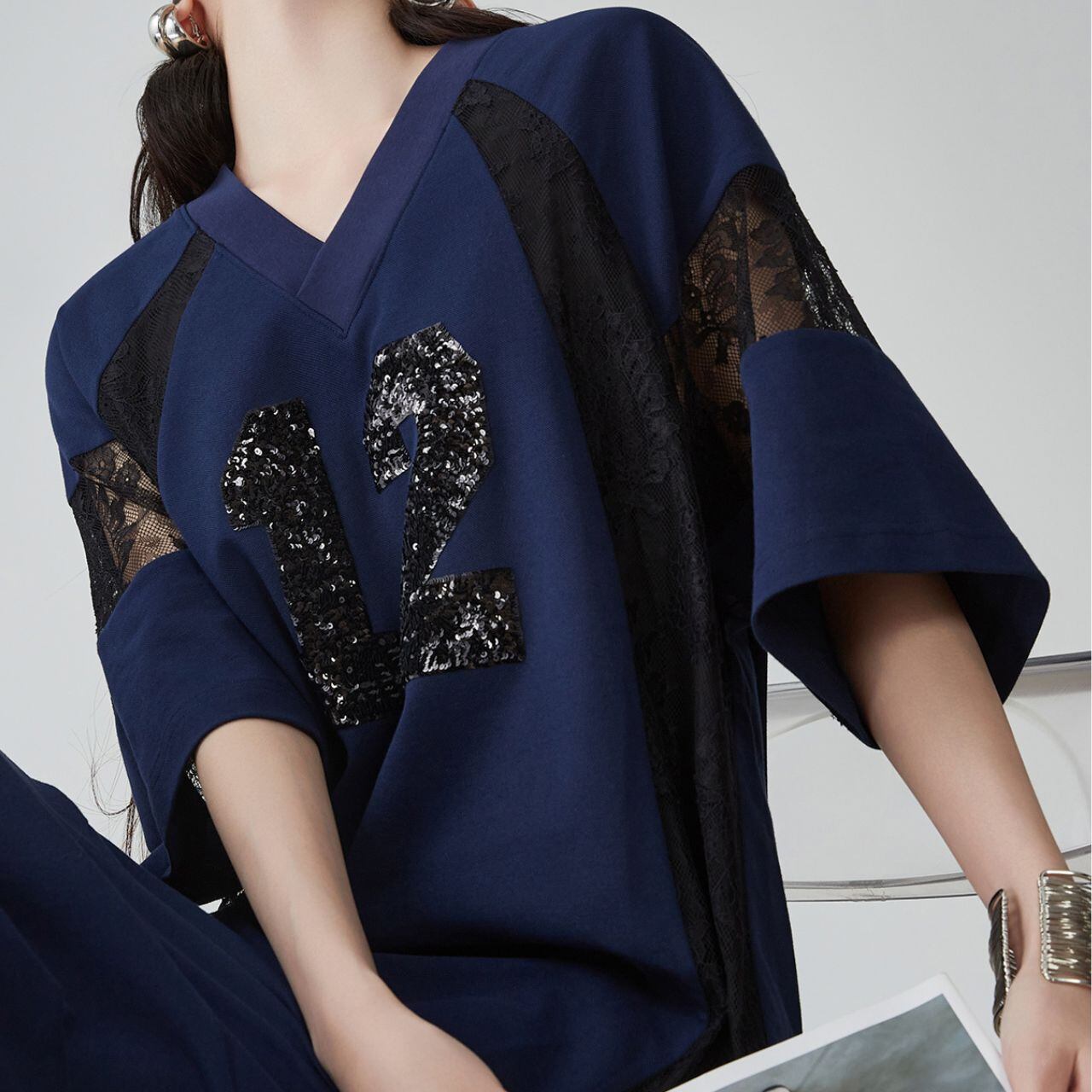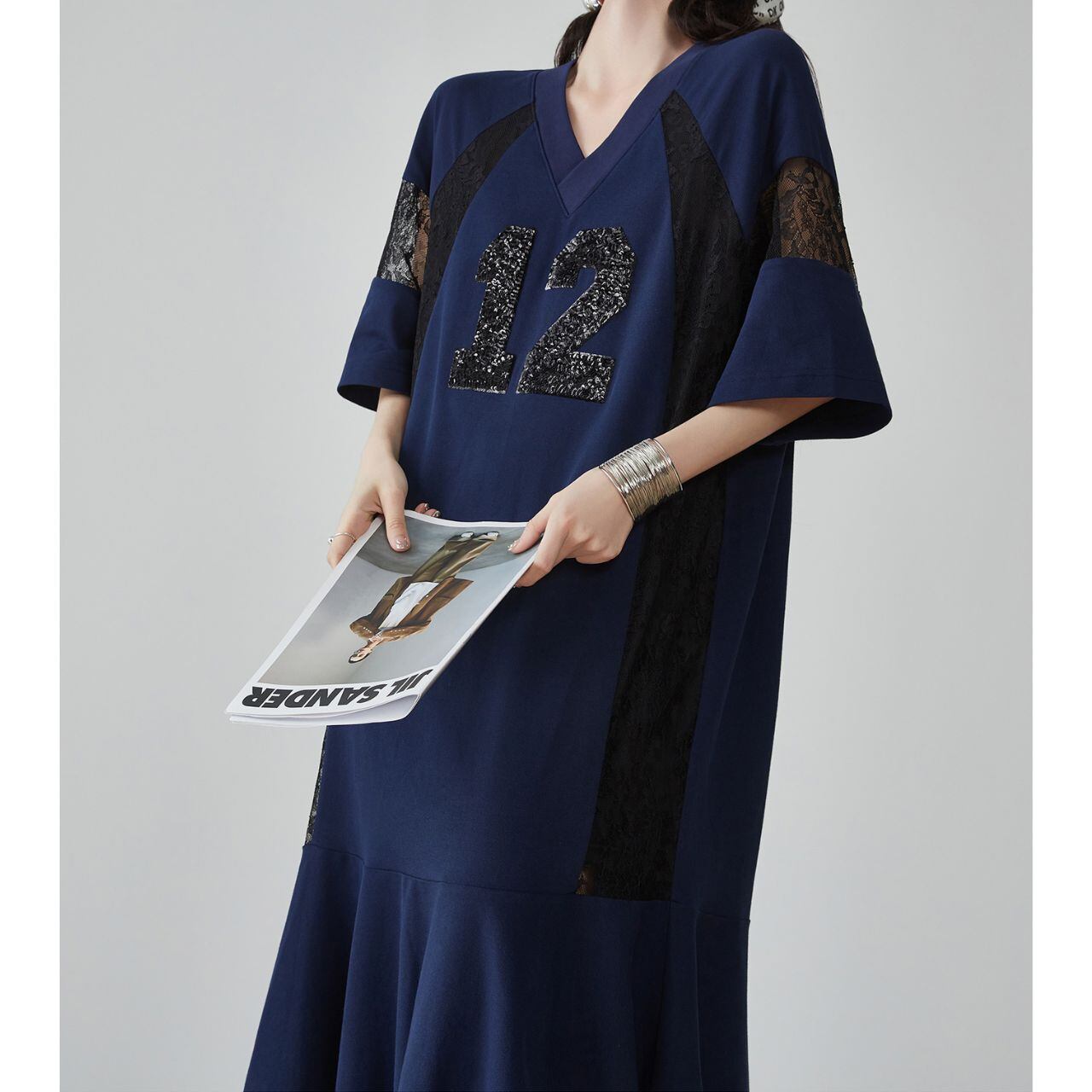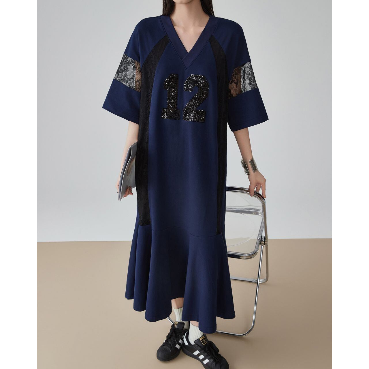 Bold Contrast レーススリーブナンバーワンピース P00009