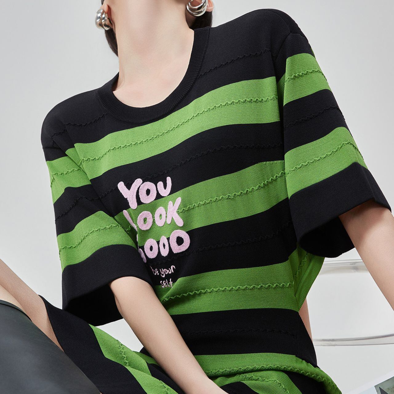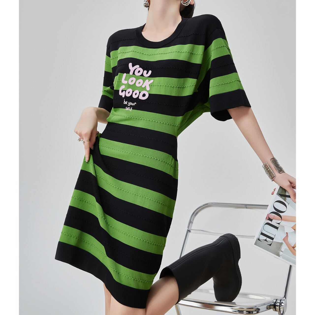 Cartoon Message ボーダーTシャツワンピース P00016