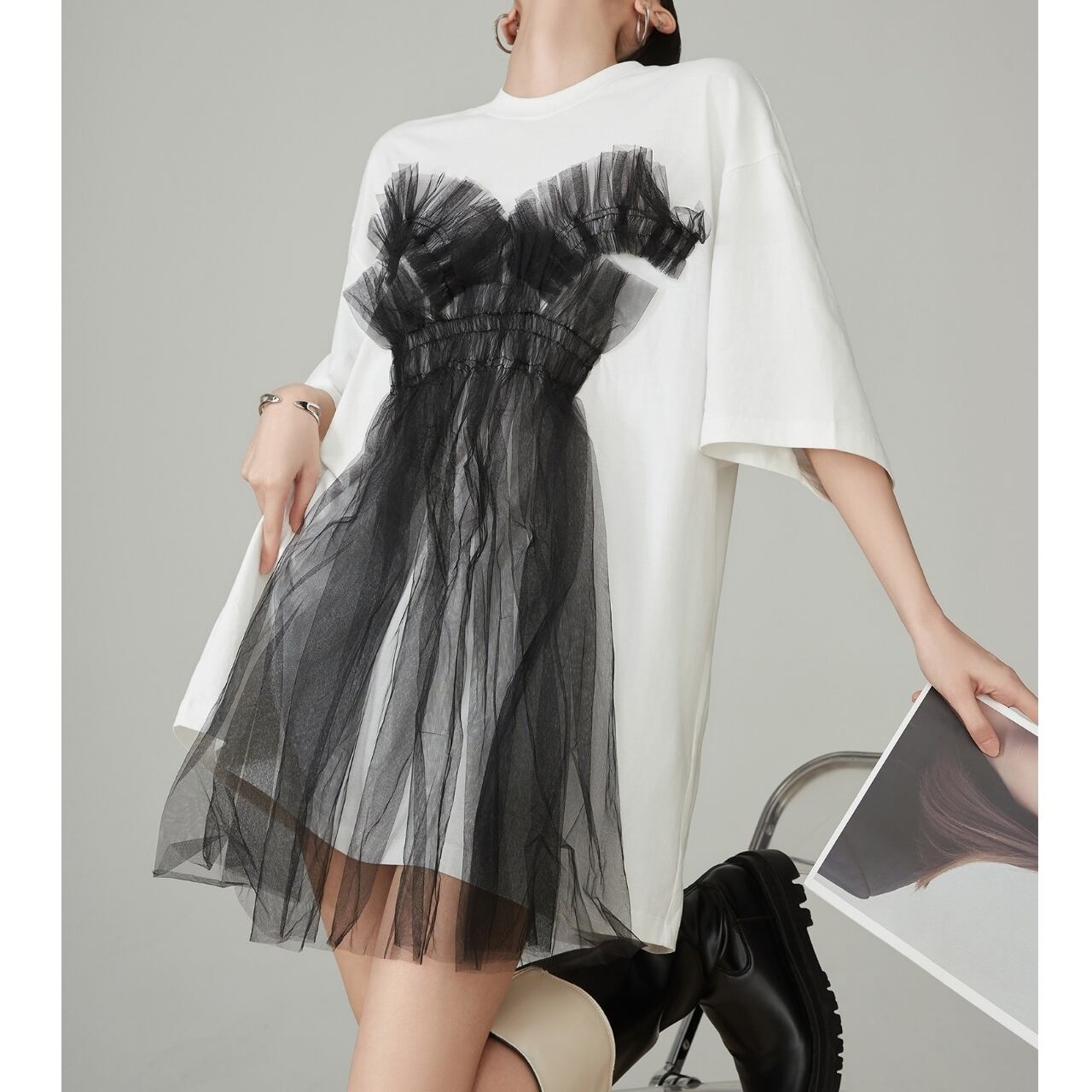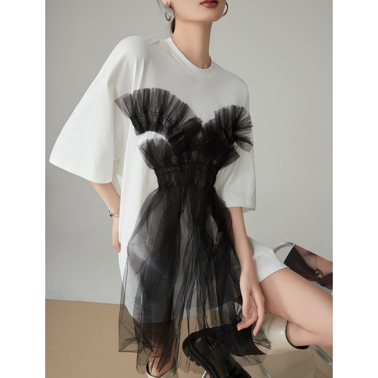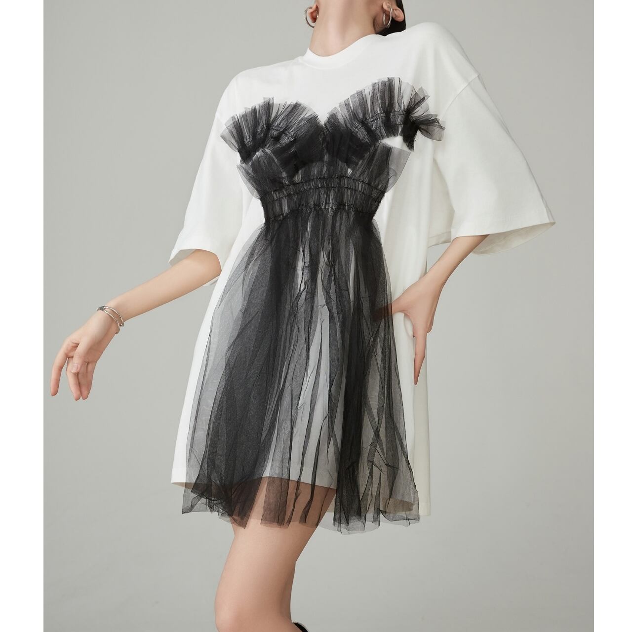 Abstract Tulle Tシャツワンピース P00110