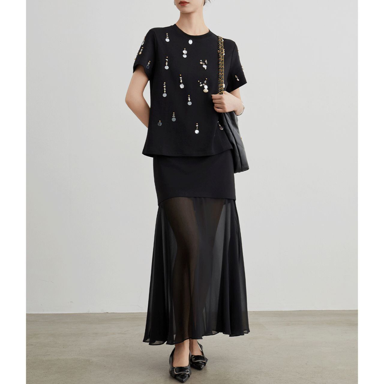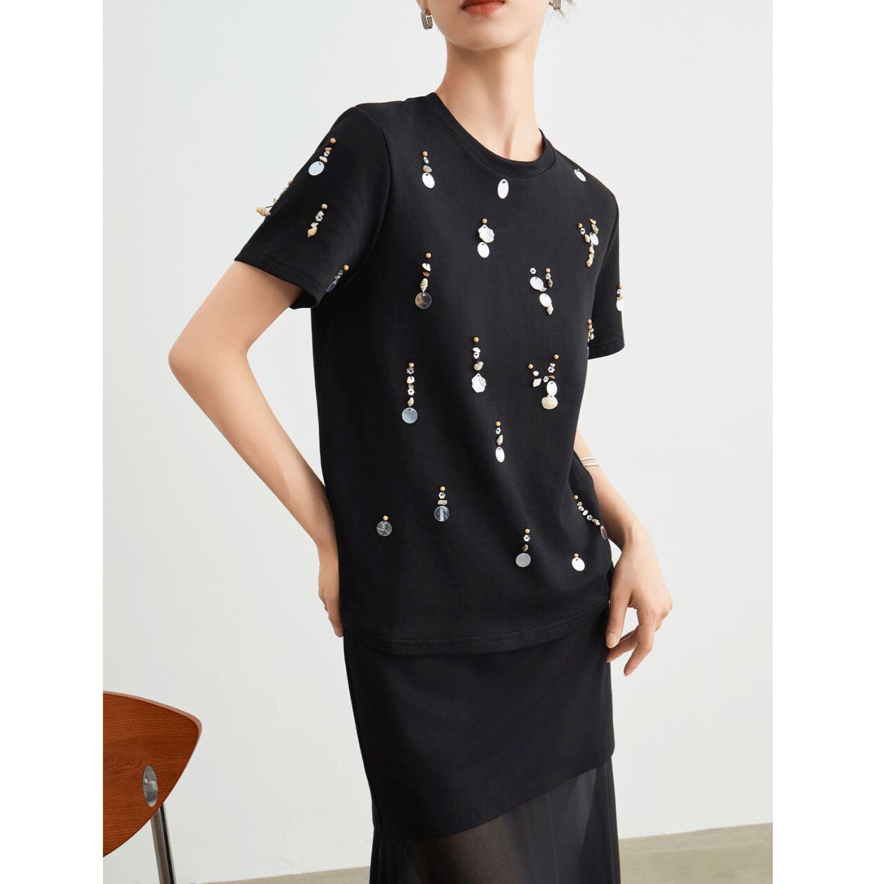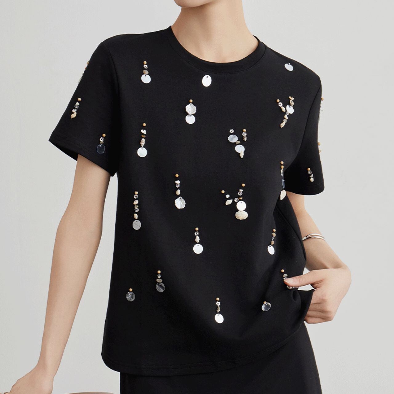 Bold Contrast スパンコール アート Tシャツ P00044
